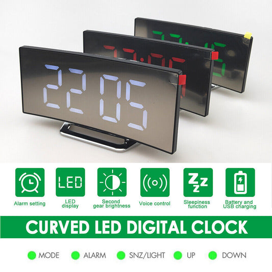LED Digital Alarm Clock USB Temperature Curved Display Snooze Bedside Modern Hot