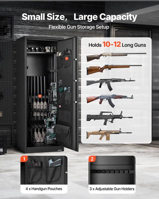 10-12 Gun Safe, Long Gun Cabinet For Rifles And Pistols, Quick Access Rifle Safe With 4 Pistol Pockets And 3 Adjustable Racks, Large Digital Cabinet With Key And Password Lock