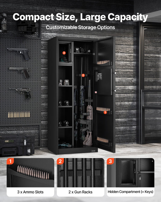 4 Gun Safe, Long Gun Cabinet For Rifles And Pistols, Quick Access Rifle Safe With 3 Ammo Slots And 2 Adjustable Racks, Large Digital Cabinet With Key And Password Lock