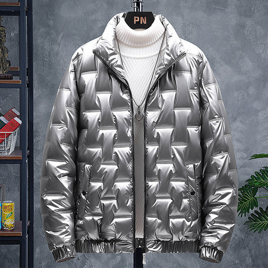 Men's Glossy Solid Color Stand-up Collar Casual Jacket