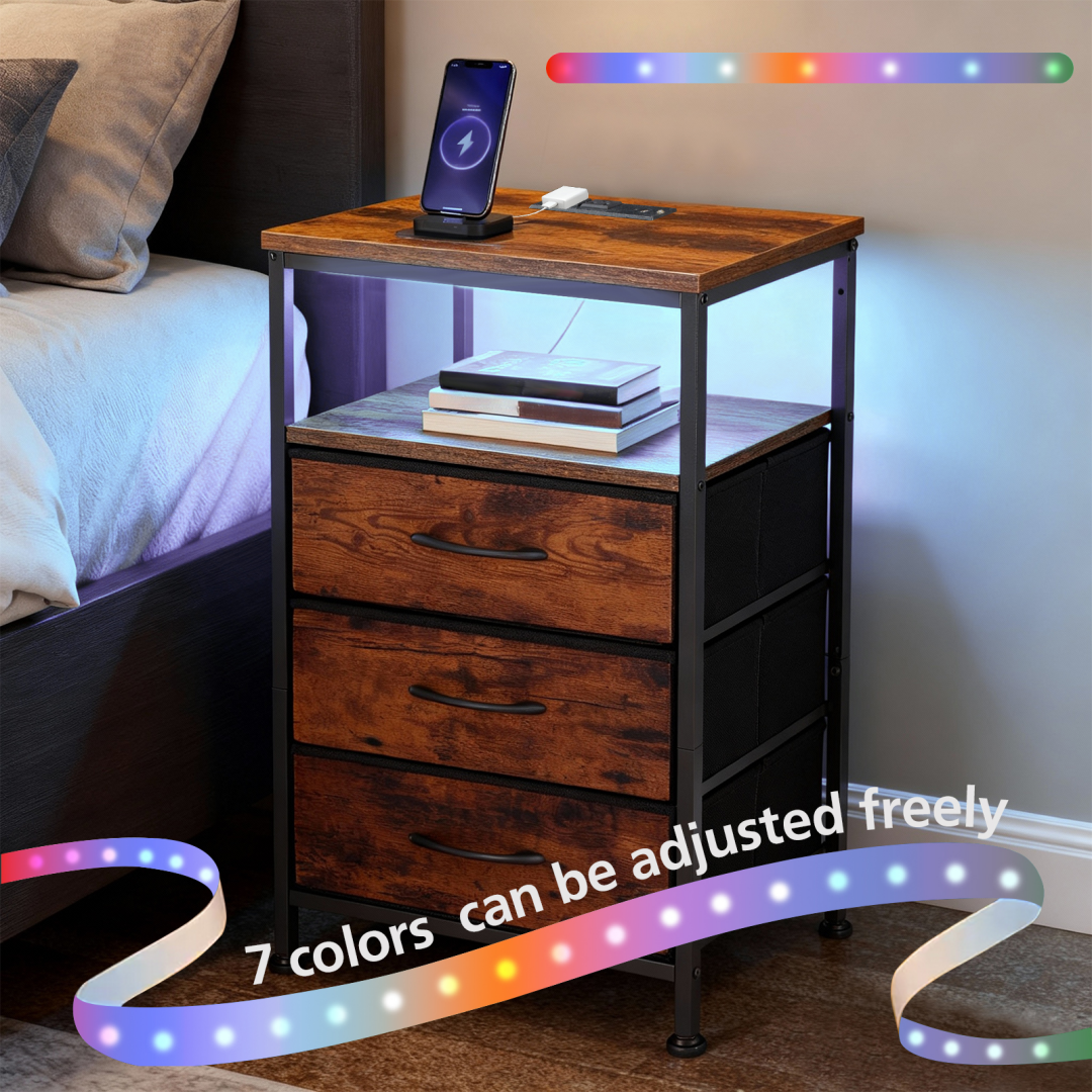 【Customizable Ambiance with LED Light Strip】Get ready to personalize! This isn’t just a bedside table; it’s a vibe. The included color-changing light strip is controlled right from your phone.