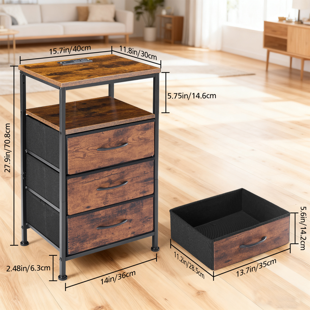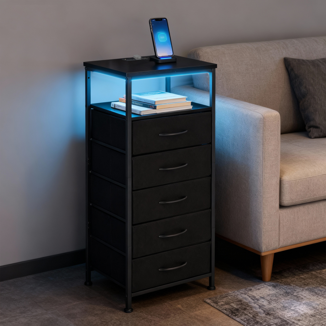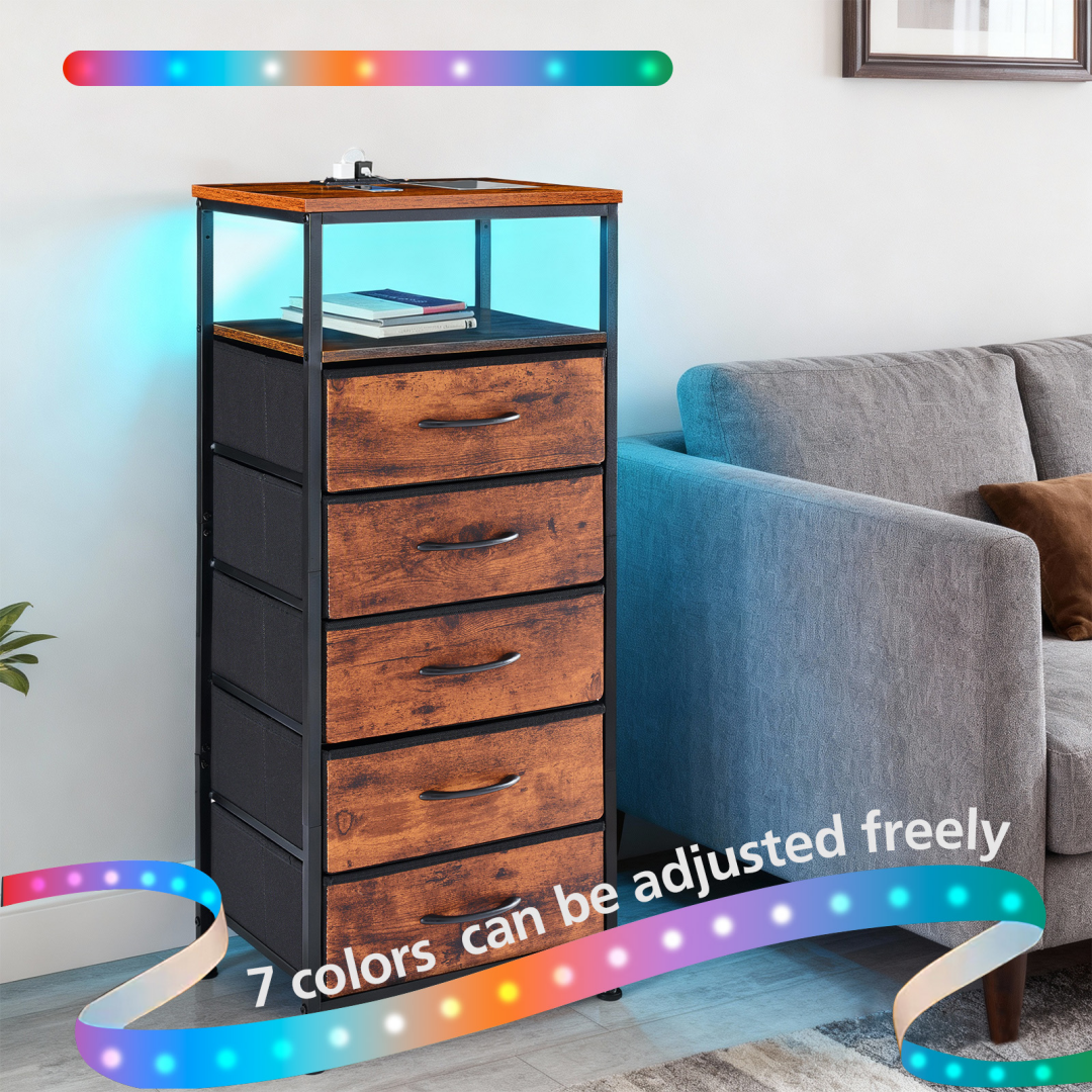 Nightstand With Charging Station, Bedside End Table With 5 Fabric Drawers & USB-Type-C Ports And Outlets