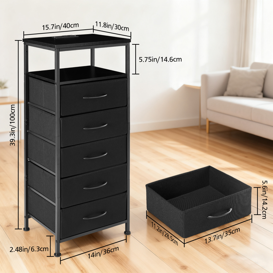 【Smart, Spacious Storage Solution】 With multiple fabric drawers (choose from 3, 4, or 5!) and a handy open shelf, everything has its place. Toss your remotes, books, and more into the deep 5.6" drawers.
